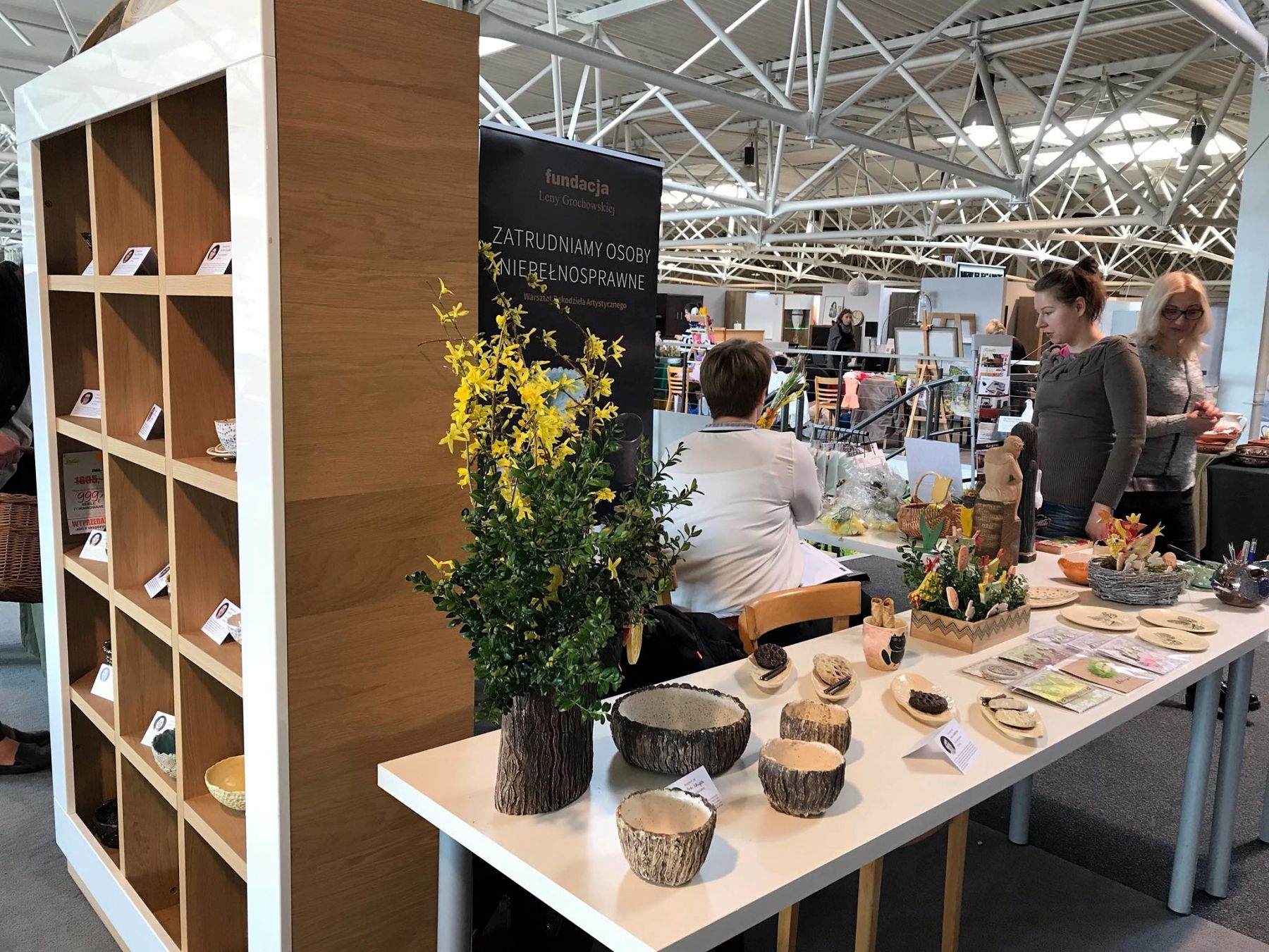 Za nami kolejny Jarmark Tradycji Wielkanocnych organizowany na terenie Parku Handlowego Arche w Siedlcach. Wystawcy z Polski i Białorusi mieli okazję przedstawić swoje regionalne wyroby rękodzielnicze. Osoby, które znalazły wolną chwilę pomiędzy codziennymi obowiązkami i odwiedziły Jarmark mogły skosztować regionalnych wędlin, chlebów czy serów oraz nabyć palny wielkanocne, koszyczki i pisanki. Jak co roku na stoisku Fundacji Leny Grochowskiej odbyła się loteria fantowa, z której dochód zostanie przekazany na cele statutowe. Nowością i prawdziwym zaskoczeniem dla bywalców targów i jarmarków stał się fakt, że na stoisku Fundacji można było zakupić produkty stworzone własnoręcznie przez osoby niepełnosprawne w Warsztacie Rękodzieła Artystycznego „toMy”. Dużym powodzeniem cieszyły się wazony, kubki oraz dekoracyjne talerze.